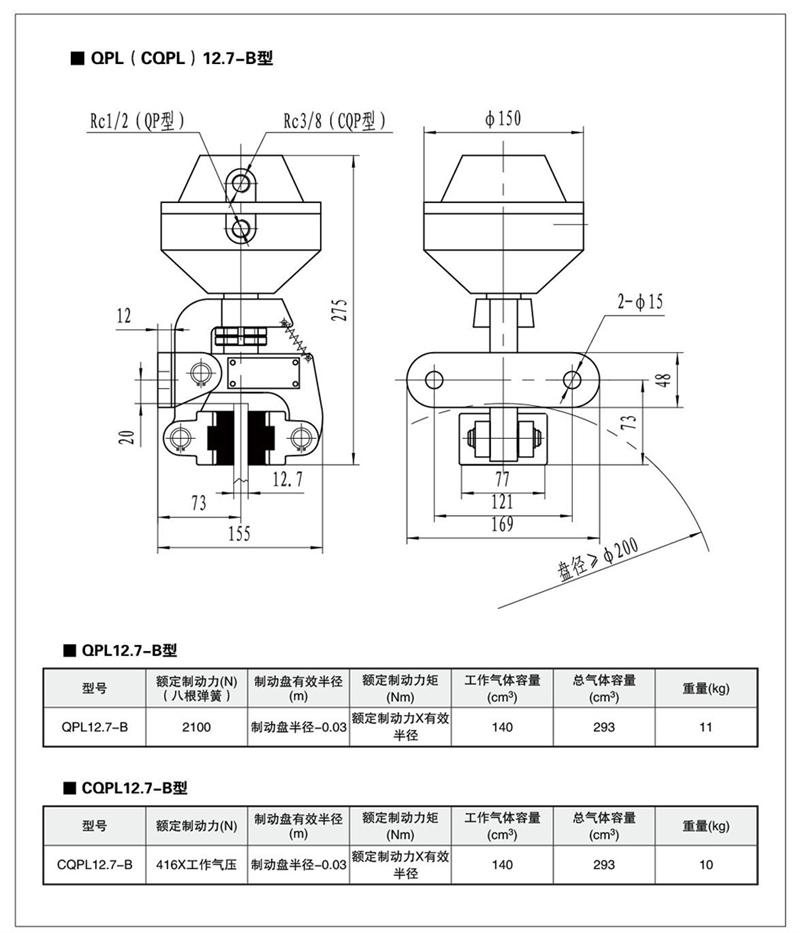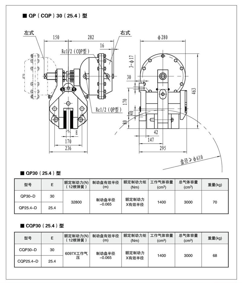【產(chǎn)品描述】 ■ 概述?QP(CQP)系列氣動(dòng)鉗盤(pán)制動(dòng)器主要用于起重、運(yùn)輸、冶金、礦山、港 口、建筑等機(jī)械中各種機(jī)構(gòu)的制動(dòng)和減速?! ?使用條件 ● 環(huán)境溫度:-5℃~40℃ ● 工作氣壓:QP系列為5- ......